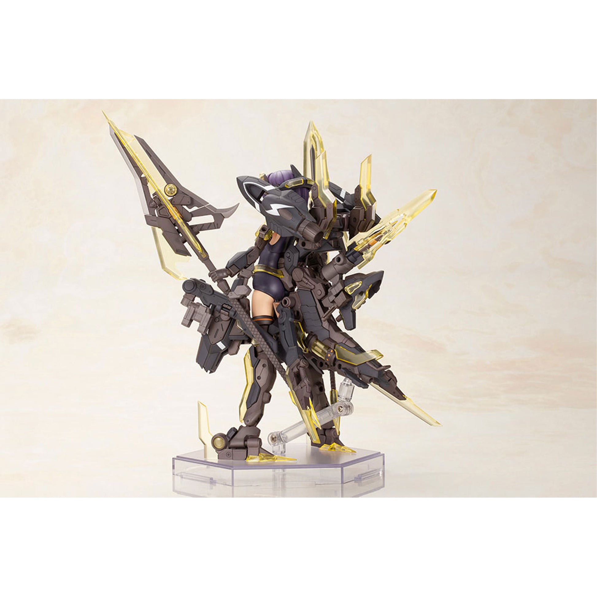 Viimeisin lisäys Kotobukiyan alkuperäisen robottimallisarjan Frame Arms -sarjaan on FRAME ARMS GIRL HRESVELGR=ALBAS! FRAME ARMS GIRL HRESVELGR herättää henkiin E-ji Komatsun piirustuksen, joka muistuttaa Tomotake Kinoshitan muunnettavissa olevasta Hresvelgristä söpönä nuorena tyttönä. Tämä sarja on Frame Arms Girl Hresvelgr -sarjan variaatiosarja. Nauti vaihtamisesta mallin kolmen muodon välillä, jotka on mukautettu uskollisesti muuttuvasta Frame Arms -alkuperäisestä. Mallin tekniset tiedot: - Mukana on Albasin suurikokoinen ase, "Gun Blade Lances". Jotta nämä aseet voidaan kiinnittää runkoon, mukana on äskettäin suunnitellut kiinnitysosat ja aseita tukevat käsiteline-osat. - Siivet muuttuvat uusiksi Gun Blade Lances -lanseiksi, jotka antavat mallille kokonaan uuden siluetin myös lentokonetilassa. - Tämä mallisarja voi muuttua kolmeen muotoon: Normaalitila, Assault=Trident-tila ja Air Cruiser Mode. - Mukana on kahden tyyppisiä vakio otsatukka ja yhden silmän peittävä otsatukka (vasen ja oikea) yhteensä neljään tyyppiseen otsatukkaosaan. - Sisältää neljän tyyppisiä kasvojen osia: normaalit / katsovat vasemmalle, huutavat / katsovat oikealle, normaalit / suu auki / katsovat eteenpäin ja tyhjät kasvot ilman tampografiaa. - Kolme kasvoosaa on valmiiksi maalattu, joten pelkkä sarjan kokoaminen luo mallin, joka on uskollinen alkuperäiselle taiteelle. - Sarja sisältää tarroja, kuten silmät ja ilmeet. - Ulos avautuvat olkanivelet ja joustavat olkavarren osat mahdollistavat tämän mallin laajan liikkumavaran. - Reiden liitosakseli on liukunivel, joka mahdollistaa laajemman liikeradan. - Ranteet on nivelletty pallonivelillä, jotka mahdollistavat erilaisia asentoja. - Mallisarja sisältää viisi sarjaa PVC-käsiosia. Kädet, mukaan lukien nivelet, voidaan vaihtaa olemassa olevan Frame Arms Girl -sarjan käsiin. - UUSI FLYING BASE sisältyy tähän mallisarjaan. - Mukana tulee kahta tyyppiä halkaisijaltaan 3 mm:n kädensijaa. - Malli voidaan näyttää aseistautumattomassa tilassa osia vaihtamalla. - Käsivarsien ja jalkojen 3 mm:n liitoskohdat ovat yhteensopivia M.S.G- ja Frame Arms -sarjojen laitteiden kanssa. - Alaselän hännänmuotoiset osat voidaan varustaa käsissä tykin muodostamiseksi. Ja hännänmuotoisten osien vasemman ja oikean teräosat voidaan irrottaa ja varustaa käsissä käytettäväksi aseina.