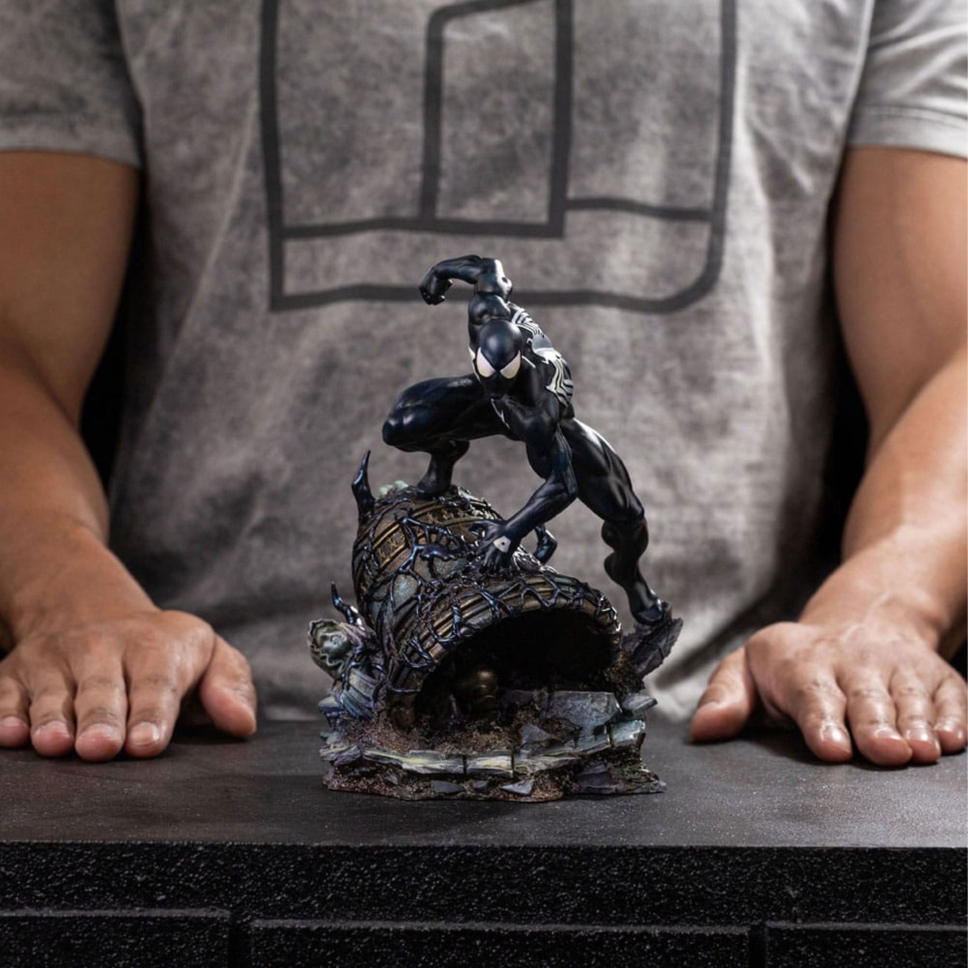Tämä virallisesti lisensoitu hartsipatsas on Iron Studiosin valmistama. Mittakaava 1/10 on noin 20 cm korkea.