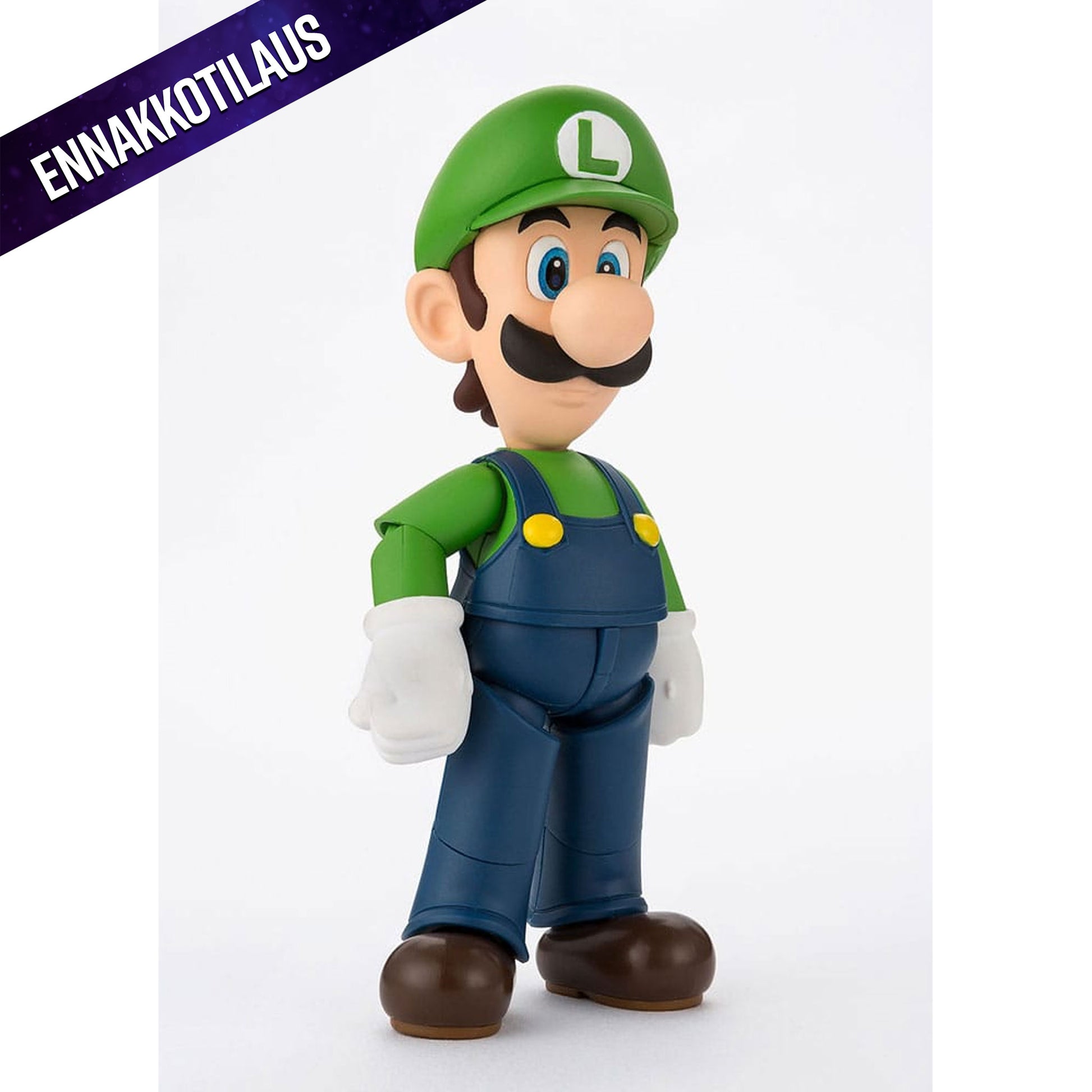 S.H.Figuartsin Super Mario -sarja on palannut! Tämän toimintahahmon monipuolisten asennon lisäksi Marion maailmaa voi laajentaa entisestään yhdistämällä sen muihin sarjan tuotteisiin (myydään erikseen). Figuuri jäljittelee Luigin mittasuhteita, mikä mahdollistaa monipuoliset toiminta-asennot. Mukana tulee myös yksi palikka, yksi punainen kuori ja erillinen jalusta!