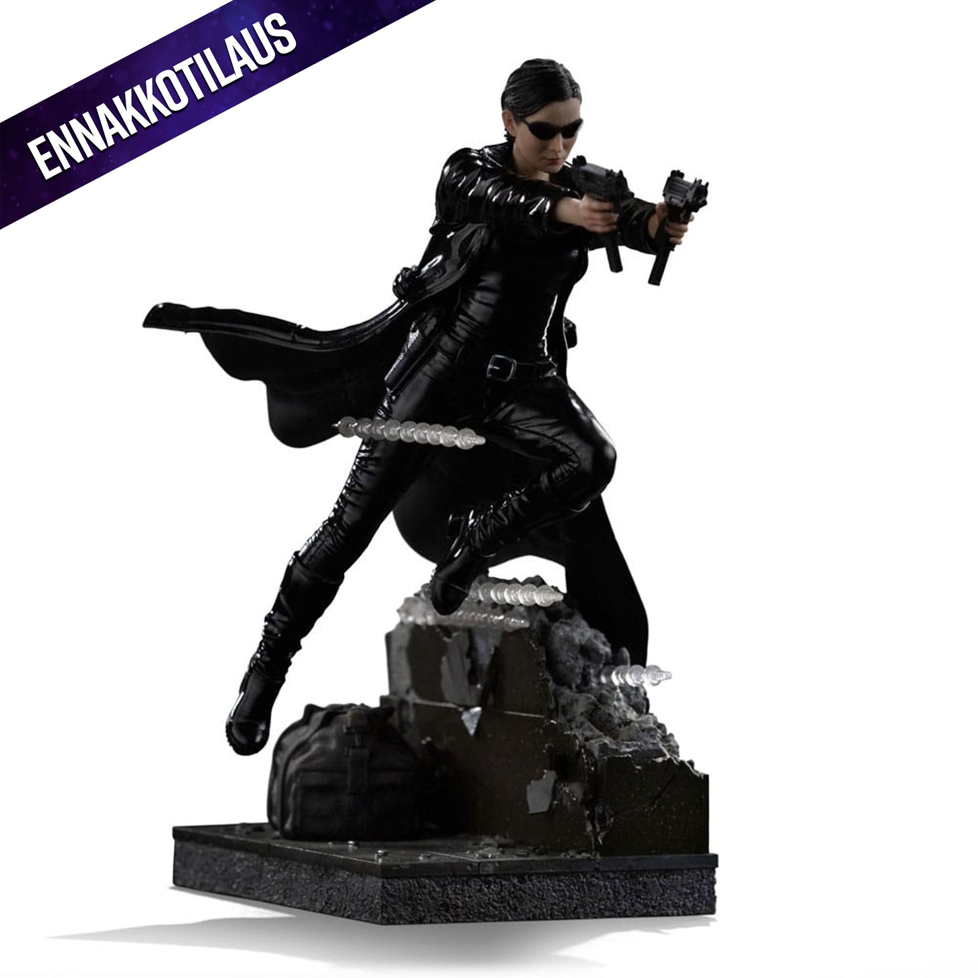 Valmistettu korkealaatuisesta polystone-resiinistä, mahdollisilla PVC- ja kangasosilla, ja viimeistelty tarkalla käsinmaalauksella, joka tuo esiin hahmon yksityiskohdat ja realismia. Tämä on ehdoton valinta kaikille Matrix-faneille ja keräilijöille, jotka arvostavat taidokasta toteutusta ja virallista lisensointia.